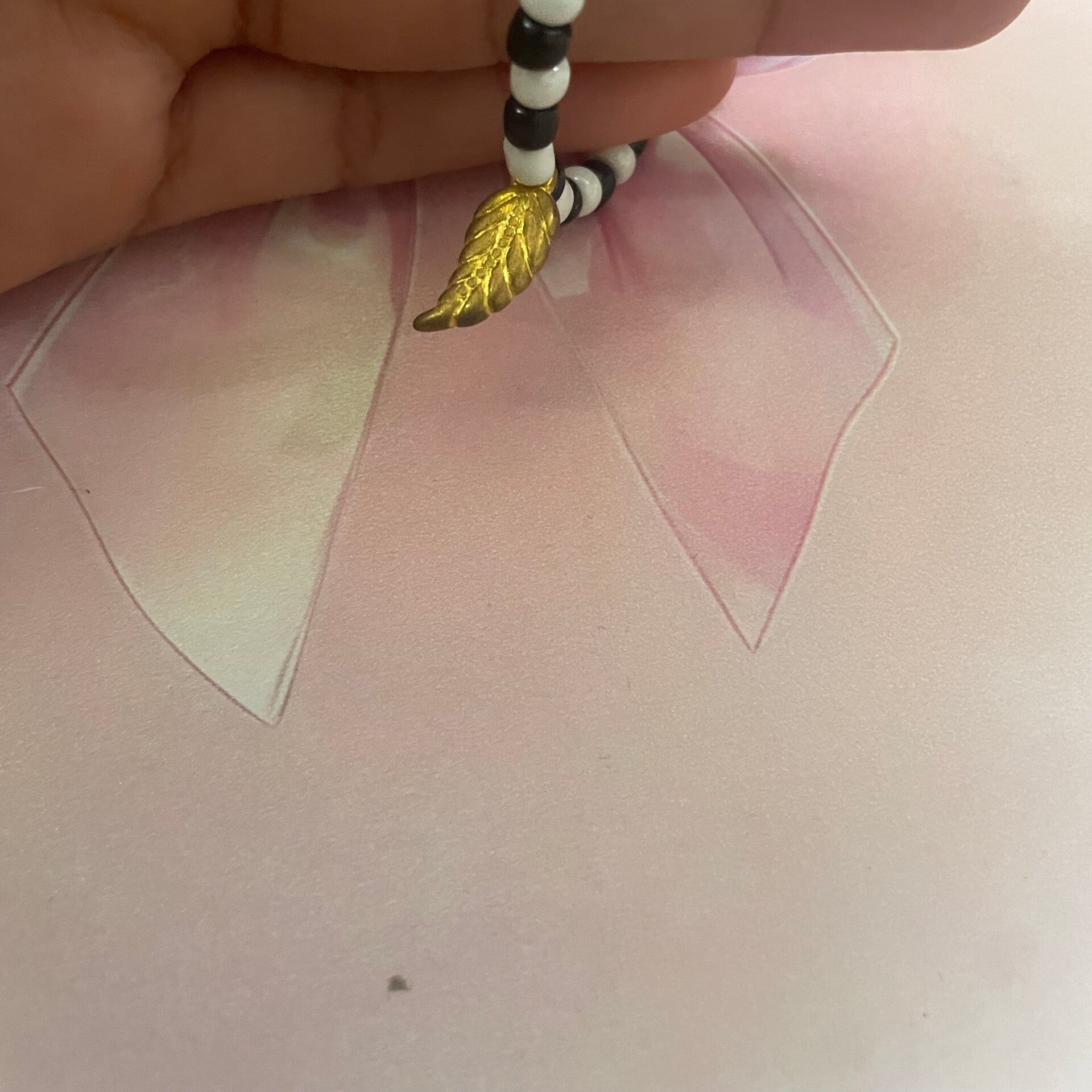 zwart wit armbande met een veer